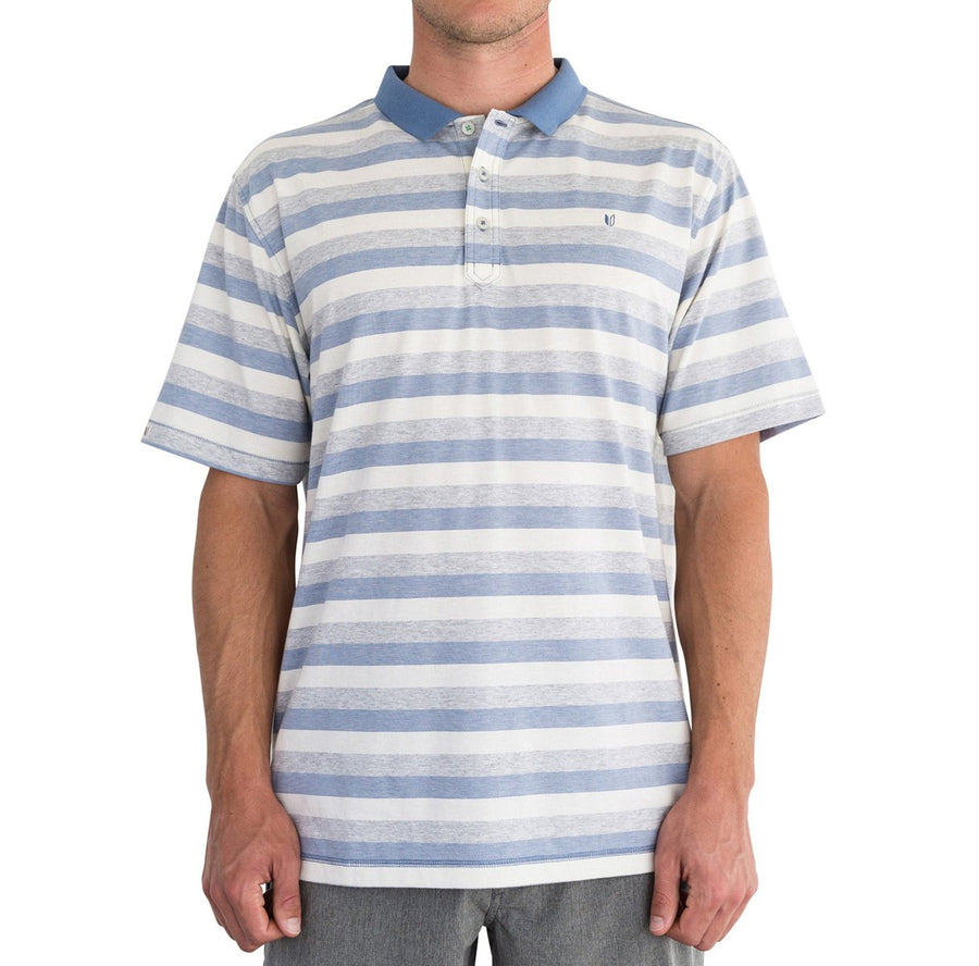 Yarn dyed multi color micro stripe jersey shirt with knit rib collar and open sleeve.